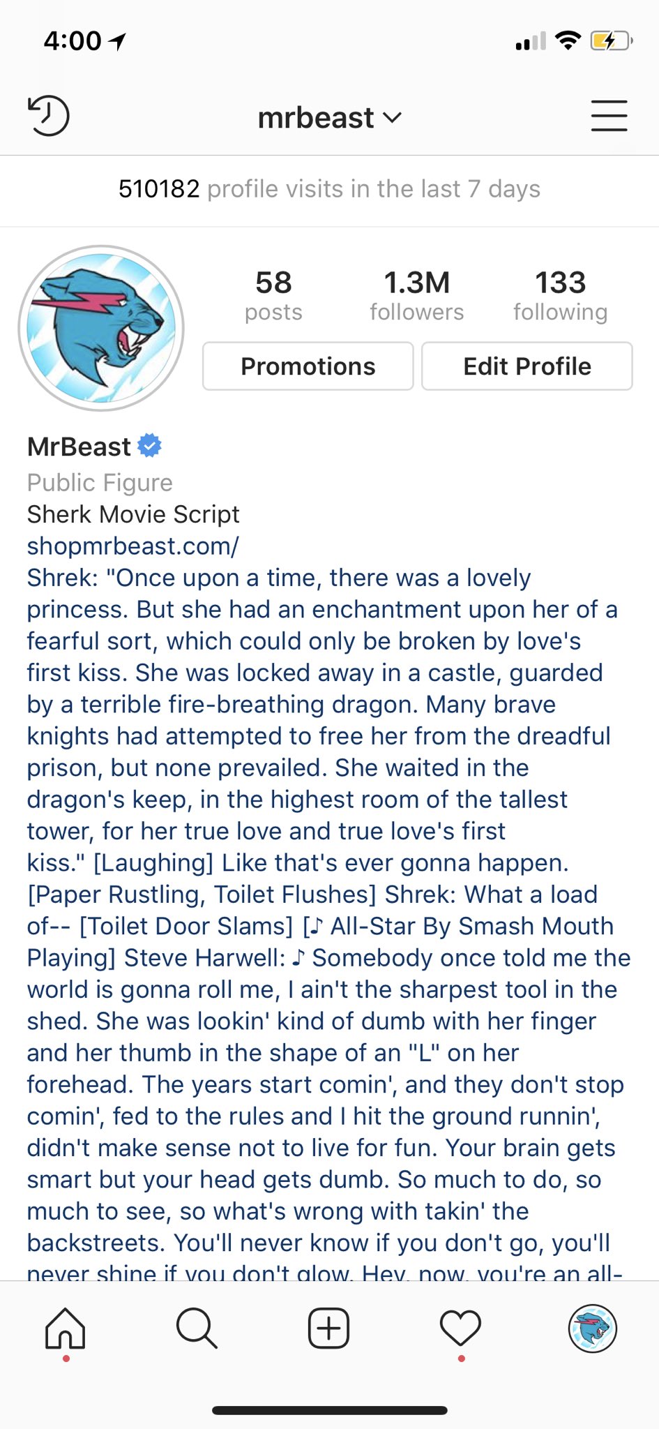 Mrbeast On Twitter My Instagram Bio Is Officially The Shrek Movie Script Https T Co Oaskv6gyqc Twitter