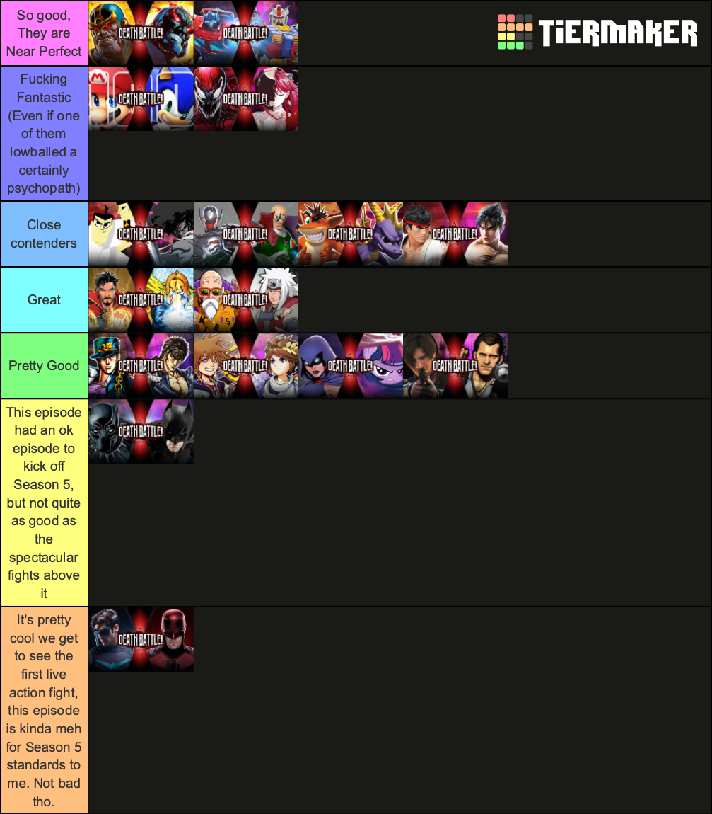 User Blog Lankyegg2002 Death Battle Season 5 Tier List Death Battle Wiki Fandom